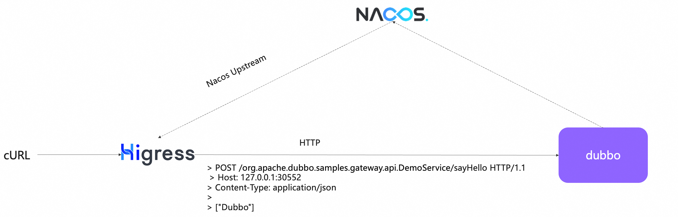 $ curl "localhost/org.apache.dubbo.samples.gateway.api.DemoService/sayHello?name=HigressTriple"